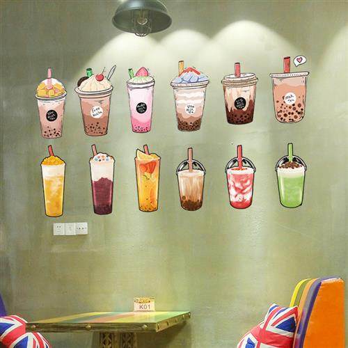 创意奶茶店墙面装饰贴纸冷饮店商品装饰贴个性P店铺玻璃门装饰贴热门设计联盟服务商