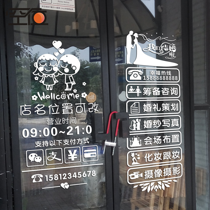 婚庆店装饰玻璃门贴纸婚纱店布置影楼图标墙贴画店铺橱窗贴纸创意热门设计联盟服务商
