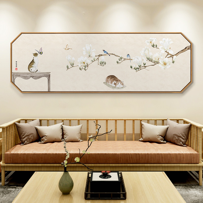 猫的憧憬新中式客厅墙面装饰画中国风花鸟横幅壁画卧室床头挂画热门设计联盟服务商