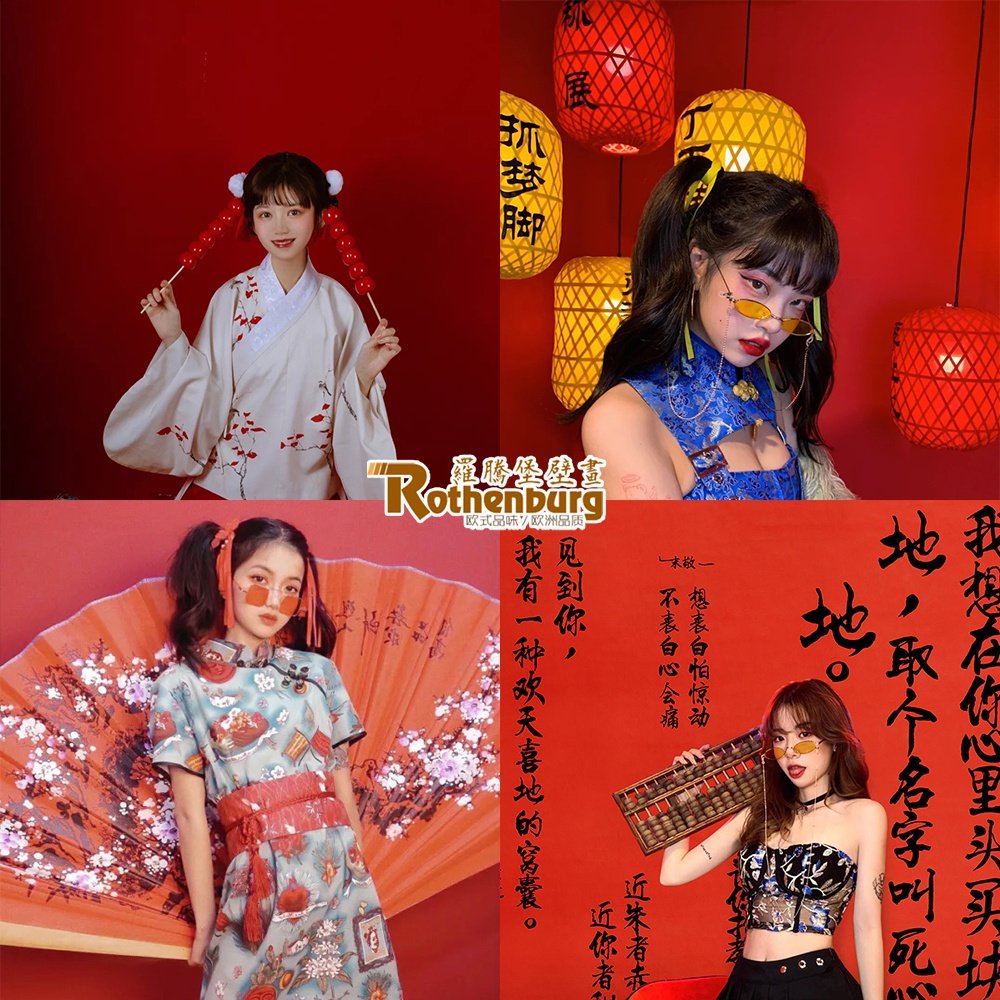 中式故宫背景墙中国风大红色网红拍照壁纸汉服摄影婚纱艺术照墙。热门设计联盟服务商