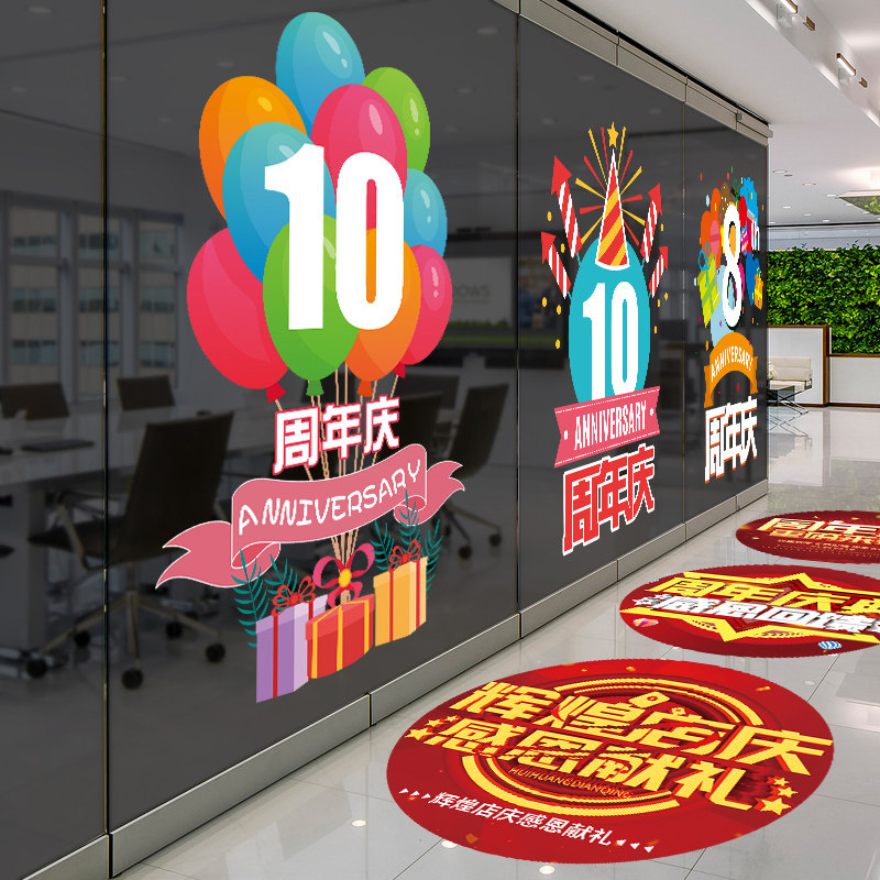 周年庆装饰布置墙贴纸公司企业店庆开业活动用品橱窗玻璃门贴定。热门设计联盟服务商