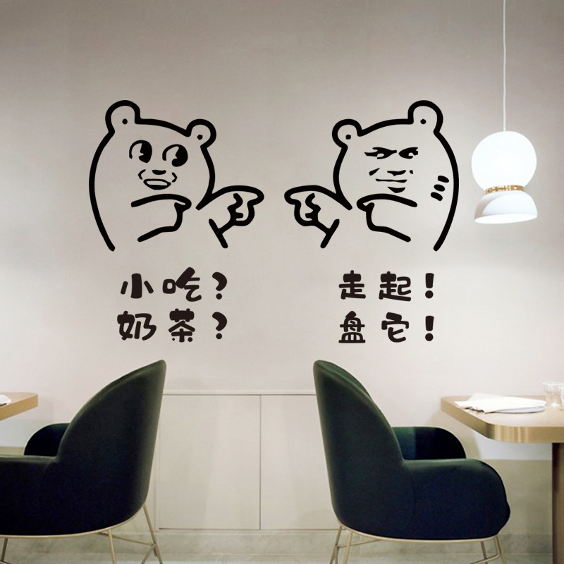 创意奶茶店墙面装饰贴纸餐饮店背景墙店铺网红玻璃门表情包文字。热门设计联盟服务商