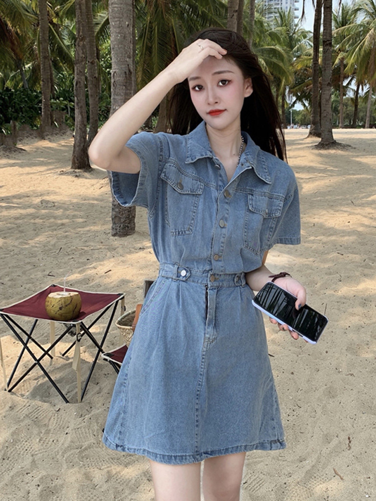 牛仔连衣裙女装夏季2021新款设计感小个子收腰显瘦修身气质短裙子热门设计联盟服务商